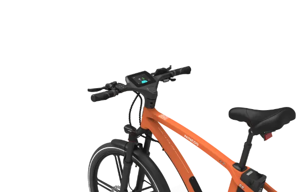 Naadloos verwerkt in de stang en heeft een actieradius van 100 kilometer. De invloed van temperaturen en de mate van ondersteuning heeft wel invloed hierop.