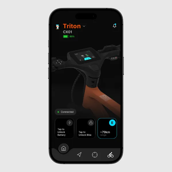 Koppel je Iphone of Android met de fiets. Navigatie kun je bedienen en aflezen op je scherm die op het stuur zit.